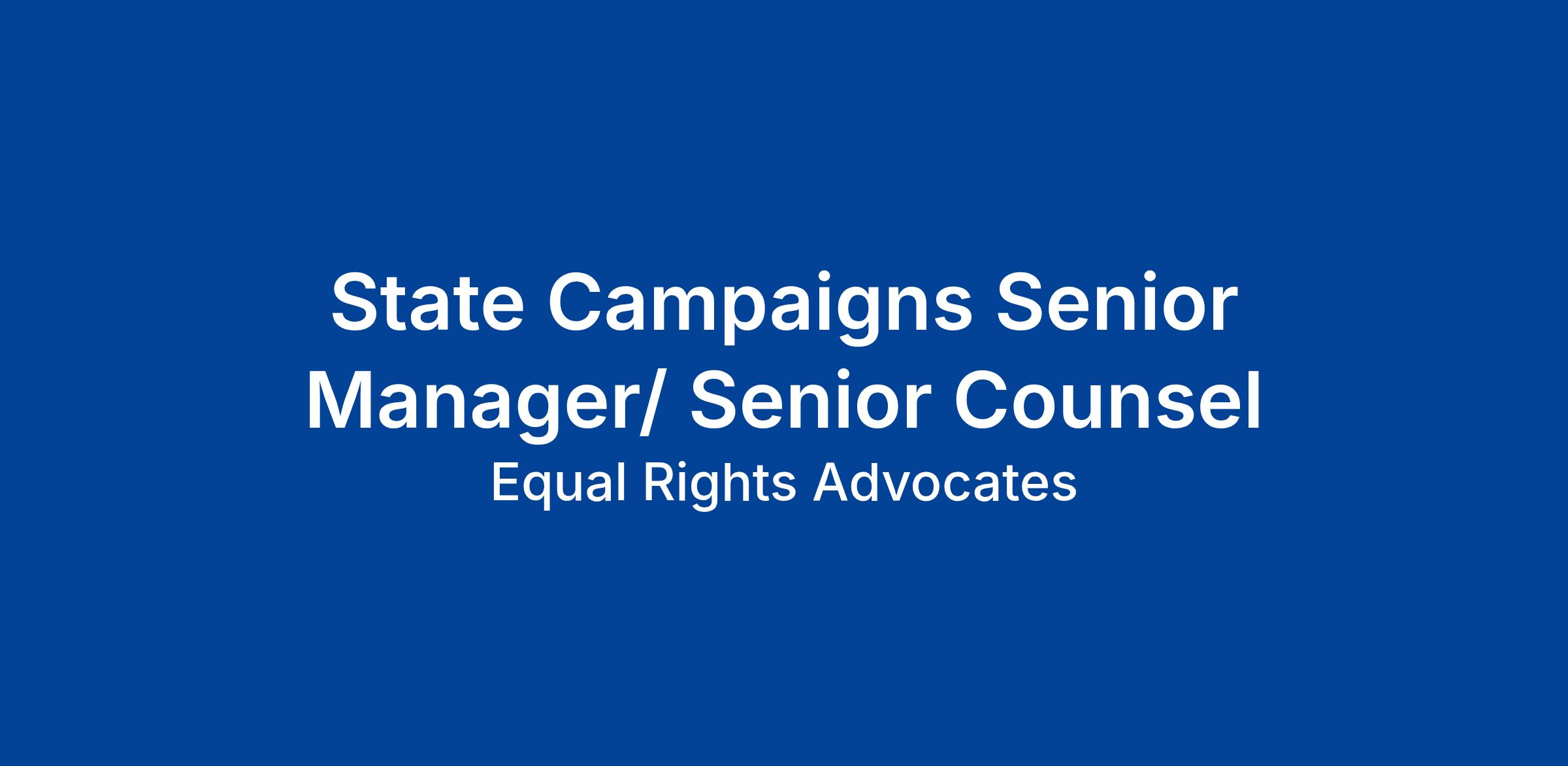 Equal Rights Advocates (ERA) is seeking a State Campaigns Senior Manager / Senior Counsel (title depending on experience) to develop and lead multi-state advocacy campaigns under the supervision of ERA’s National Campaign Director. The Campaigns coordinate and support movement building, policy objectives, and other legal initiatives of Equal Rights Advocates to advance gender justice and accelerate the pace of reform for women and people across genders.