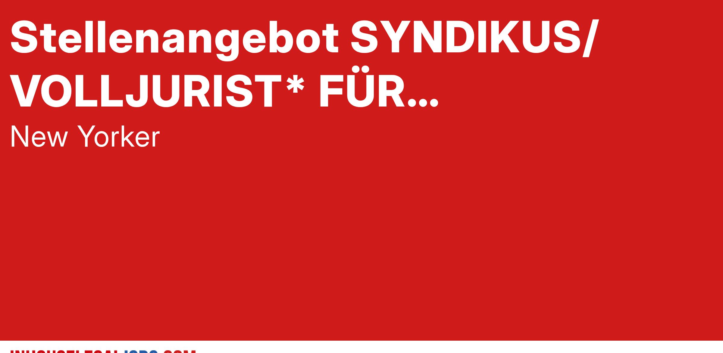 Die Konzernrechtsabteilung berät die Geschäftsleitung und Fachbereiche von NEW YORKER in vielfältigen und anspruchsvollen rechtlichen Fragestellungen im nationalen und internationalen Kontext. Sei dabei und werde mit Deinem Know-How Teil unseres Teams in einer der schönsten Branchen der Welt und sei verantwortlich für:
