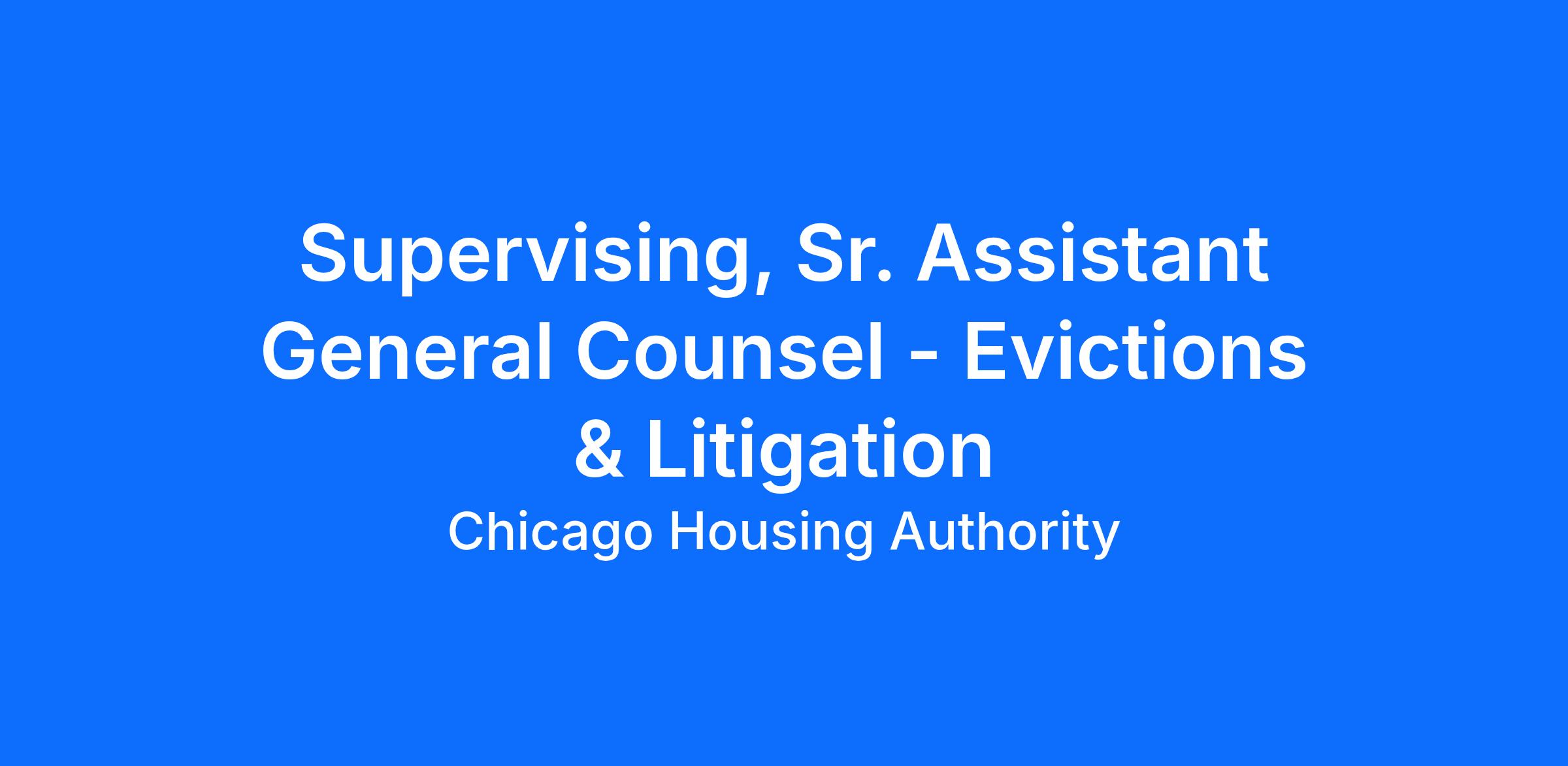 Counsel will help the Chicago Housing Authority (“CHA”) achieve its mission and goals, primarily by protecting its legal interests. Counsel will serve on CHA’s Office of the General Counsel Litigation Team. A key focus of this position will be to lead, oversee and handle a high volume of eviction-related matters. In addition to litigating cases, Counsel will be responsible for client counseling (including analyzing case-related information and preparing reports) and conducting training.
