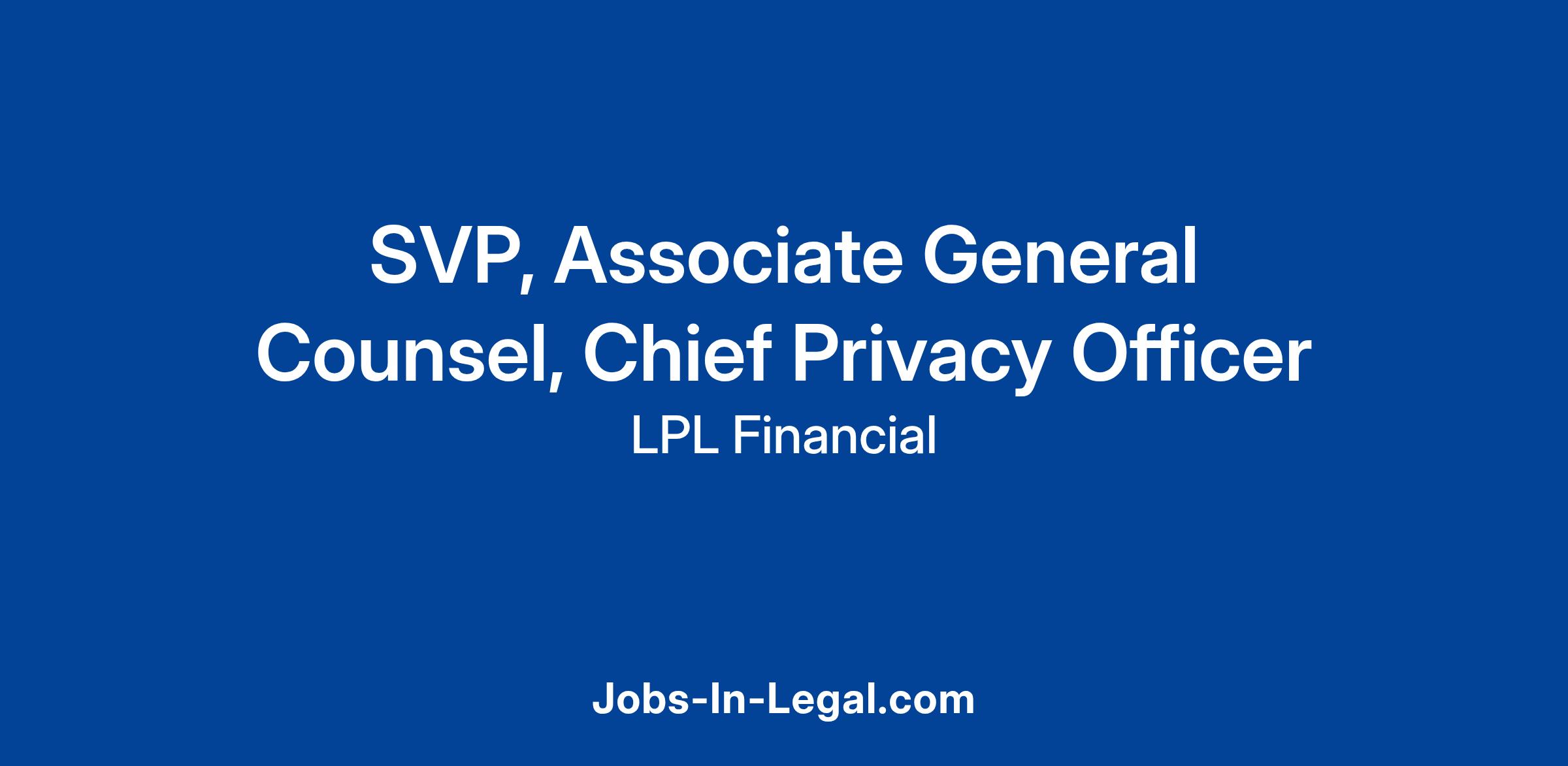 The Legal Department at LPL Financial is looking for an attorney to serve as the Chief Privacy Officer (CPO) and Senior Vice President, Associate General Counsel of the firm. This attorney will be a visible leader across LPL, providing advice on legal and policy issues relating to privacy, technology development, cybersecurity and incident response, data governance, and artificial intelligence (AI) matters. The role will work with and lead an experienced team of lawyers to provide pragmatic legal advice and thought leadership.