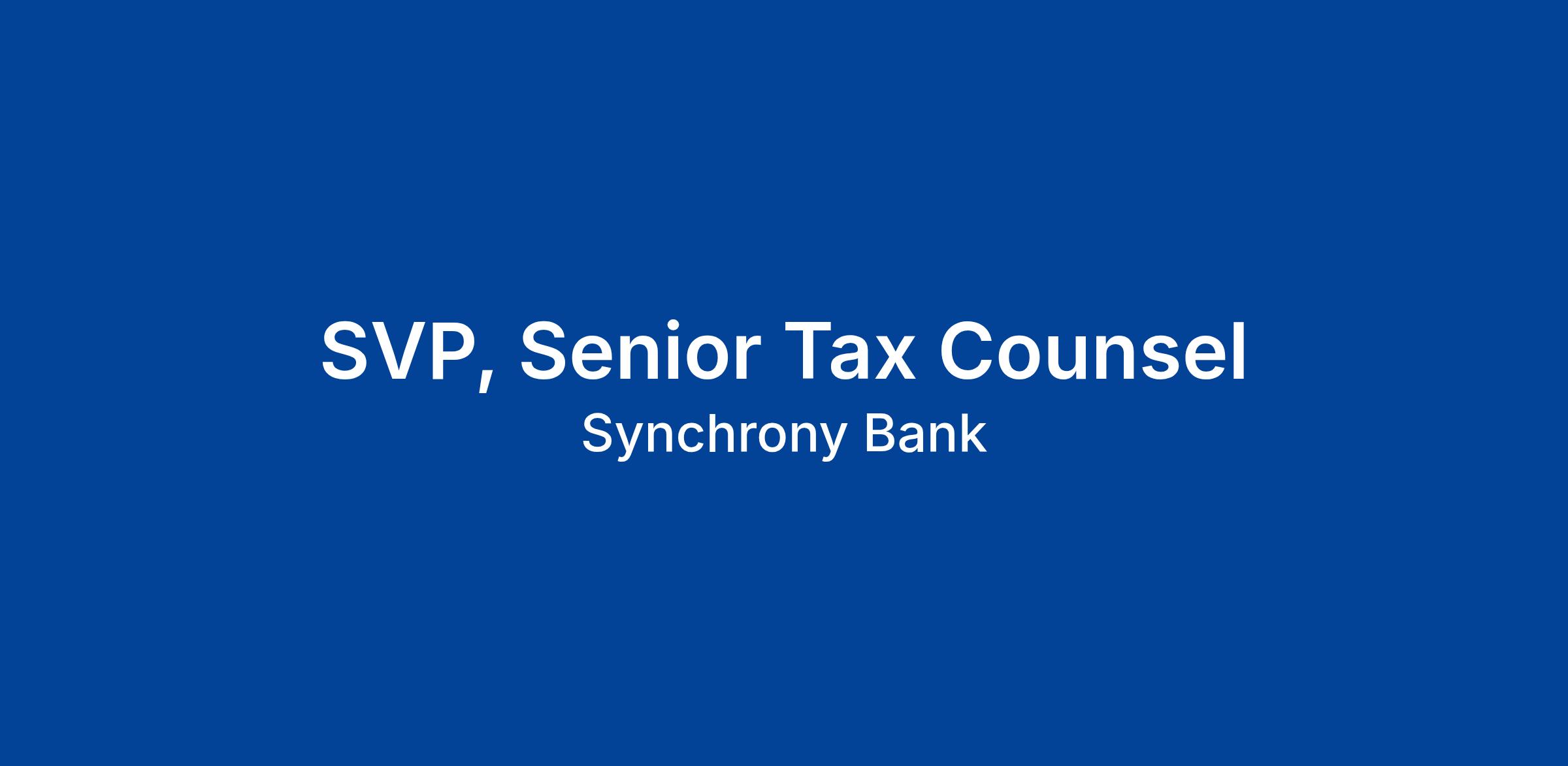 Synchrony Financial has launched a national search for a Senior Vice President (“SVP”) – Senior Tax Counsel. Reporting to the SVP – Chief Tax Officer. The incoming executive will lead all aspects of General Tax Planning, M&A Tax, International Tax, Transfer Pricing, Tax Audits and Information Reporting and Withholding for the organization, including significant involvement in tax strategy and recommending and pursuing tax strategies that support the operational objectives and optimize the Company’s tax position. This position will be based in a Synchrony hybrid location and follow Synchrony’s hybrid policy.