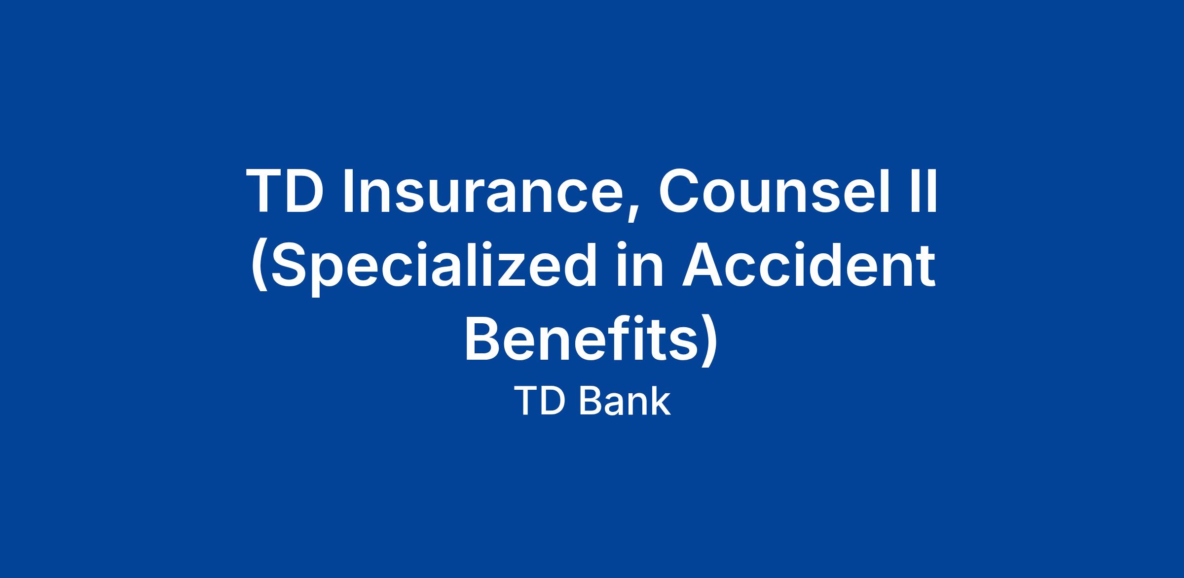 Reporting to a Practice Leader in Ontario, Counsel II handles assigned insurance legal matters, represents TD Insurance in accident benefits matters before the License Appeals Tribunal involving claims for damages and compensation for personal injury matters ranging different complexity levels.