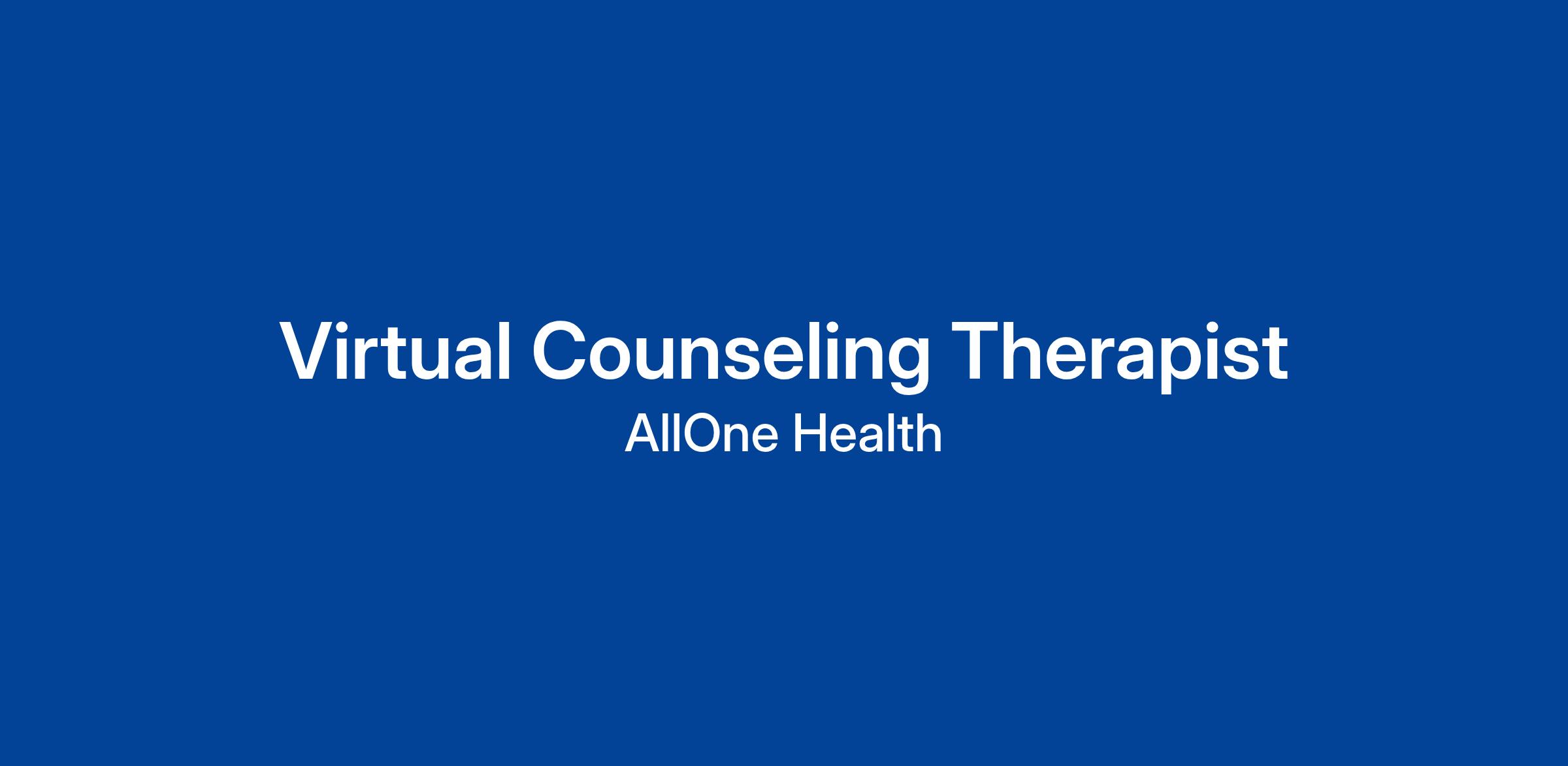 AllOne Health Virtual Counseling Program – Virtual Counseling Therapist: