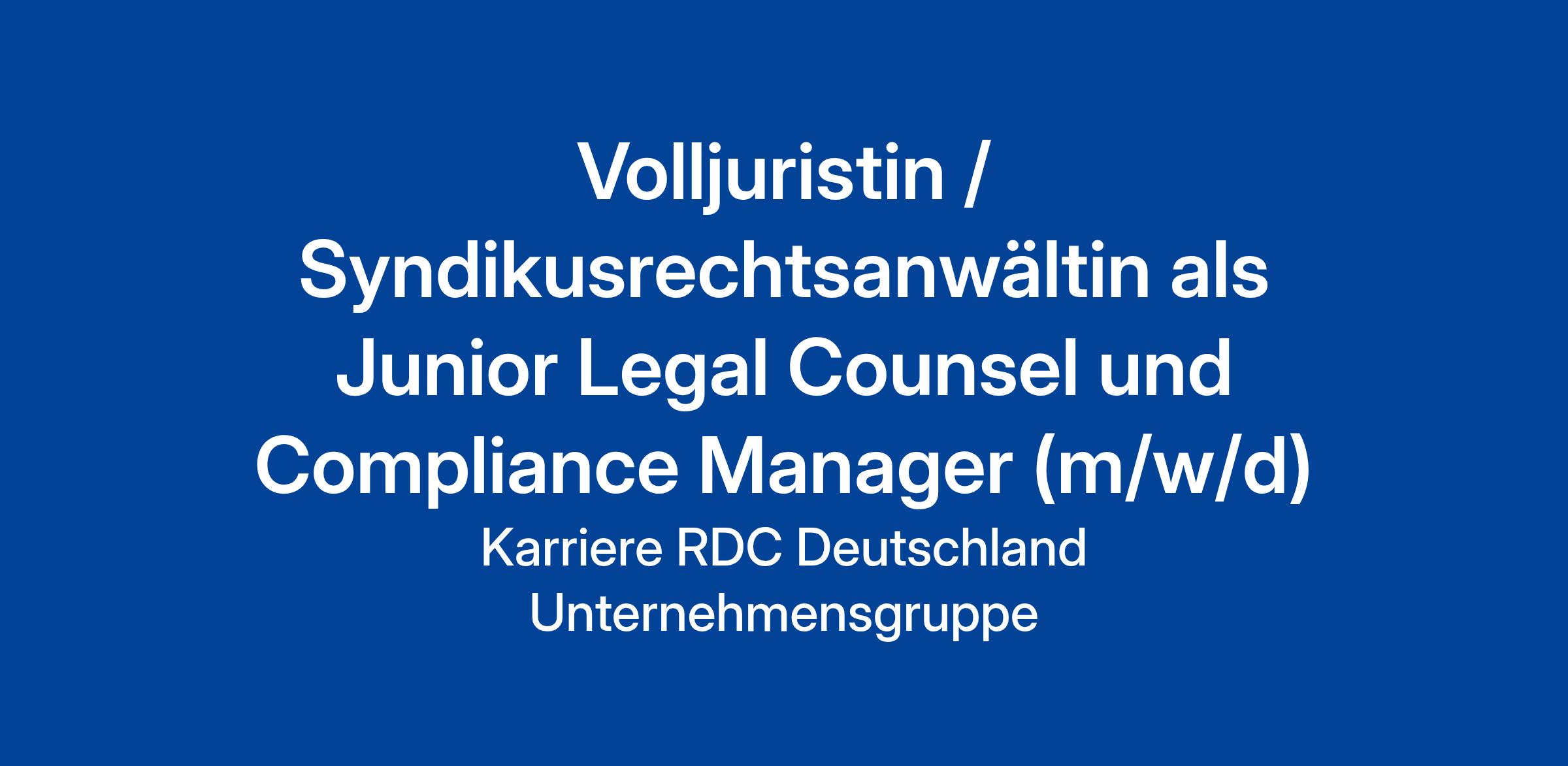 Volljuristin / Syndikusrechtsanwältin als Junior Legal Counsel und Compliance Manager (m/w/d)