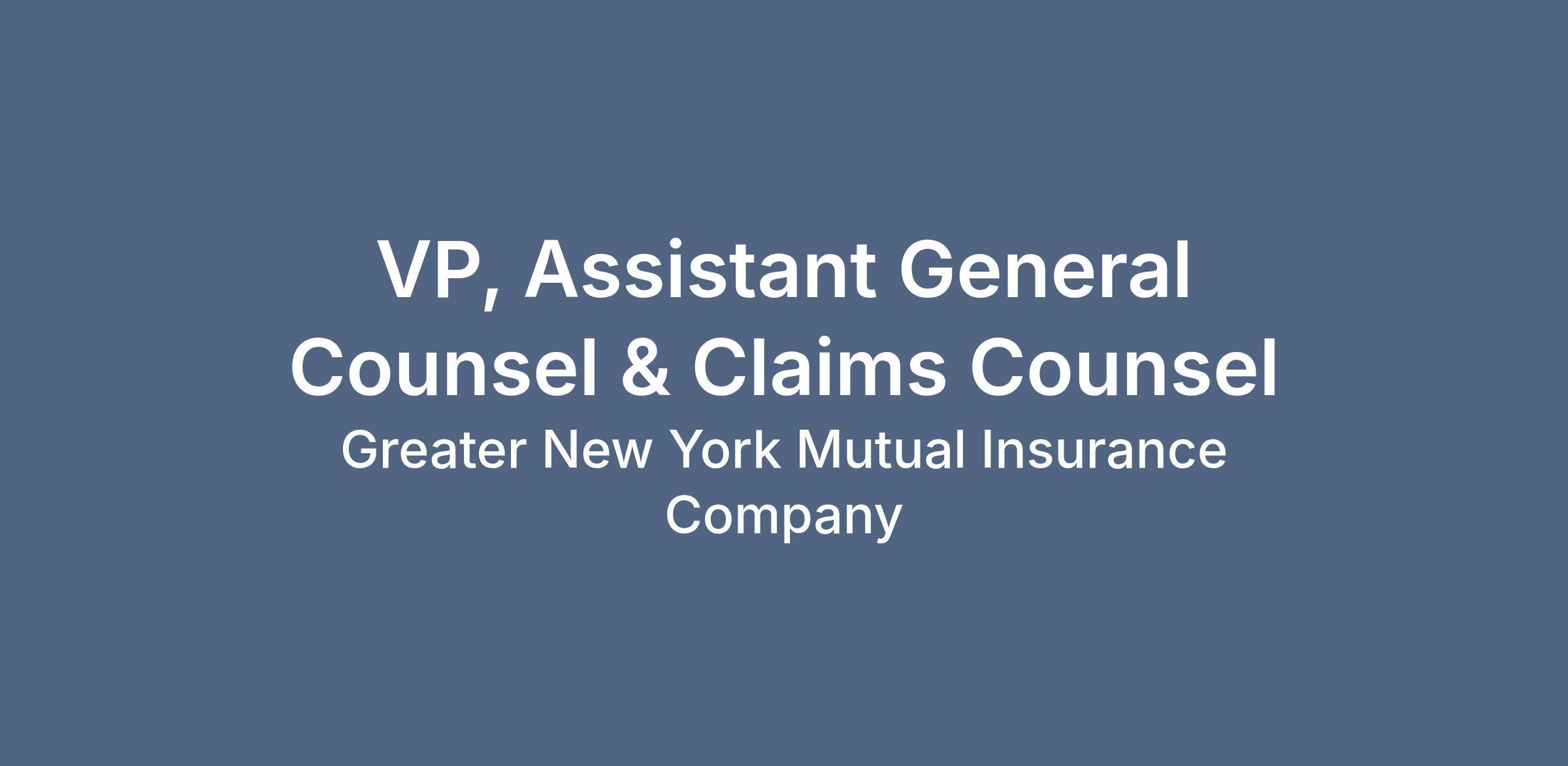 DescriptionPosition Summary: VP, Assistant General Counsel & Claims Counsel’s primarily responsibility is working with liability claims on coverage letters and claims analysis. Ensure sound litigation management practices are employed that protect the interests of GNY’s policyholders, provide superior customer experience tailored to meet our policyholders’ specific needs, and minimize litigation exposure.