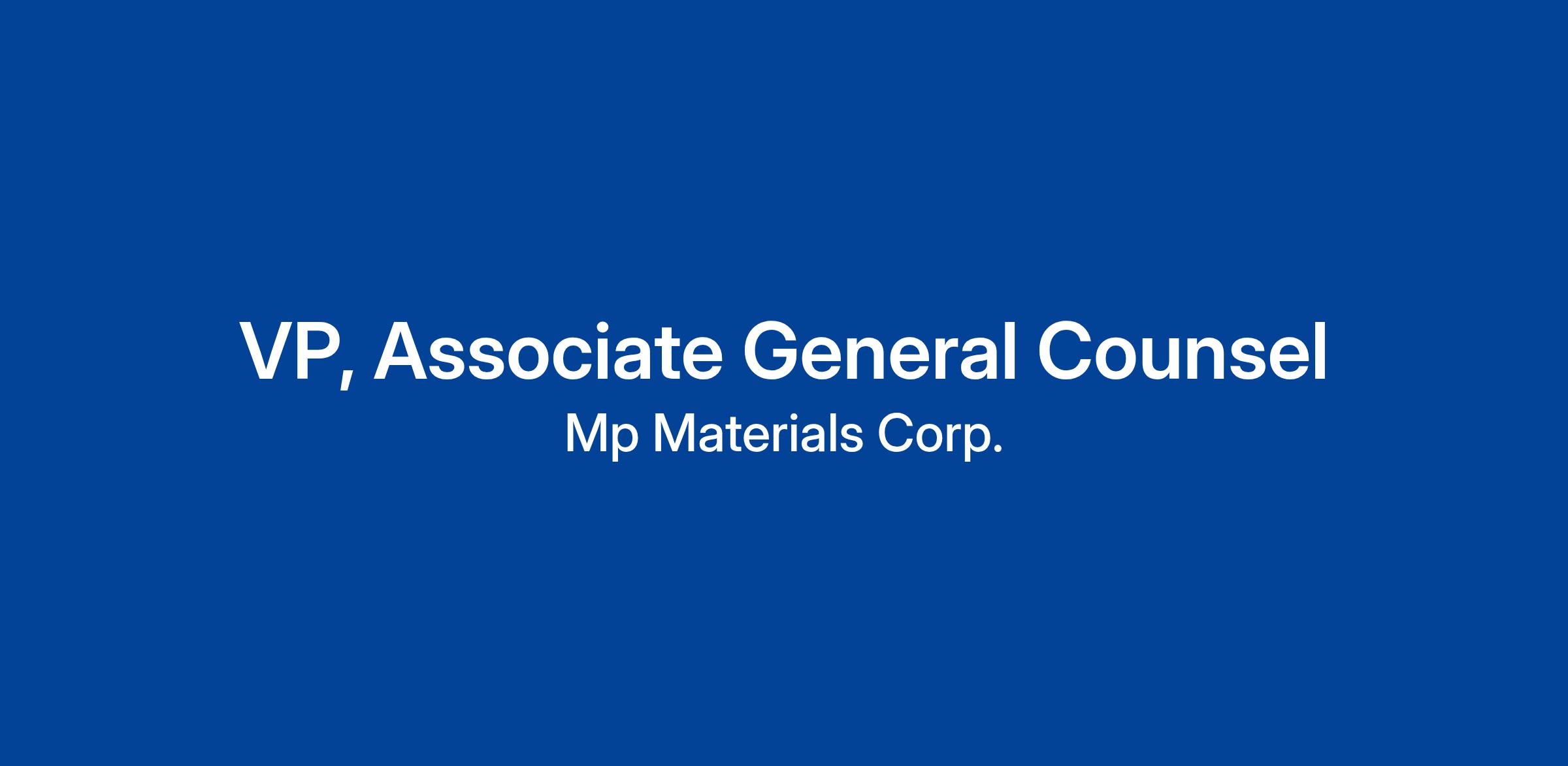 As a member of the legal department, the Vice President, Associate General Counsel will have the ability to read critically, analyze, and interpret contracts, documents, and government regulations for MP Materials and its subsidiary organizations.